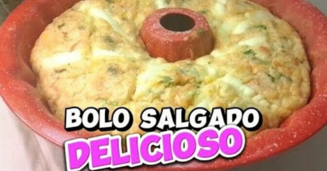 Esse bolo salgado é perfeito para festas, reuniões de família ou até mesmo como prato principal em um jantar descontraído. Ele tem uma aparência dourada por fora e uma