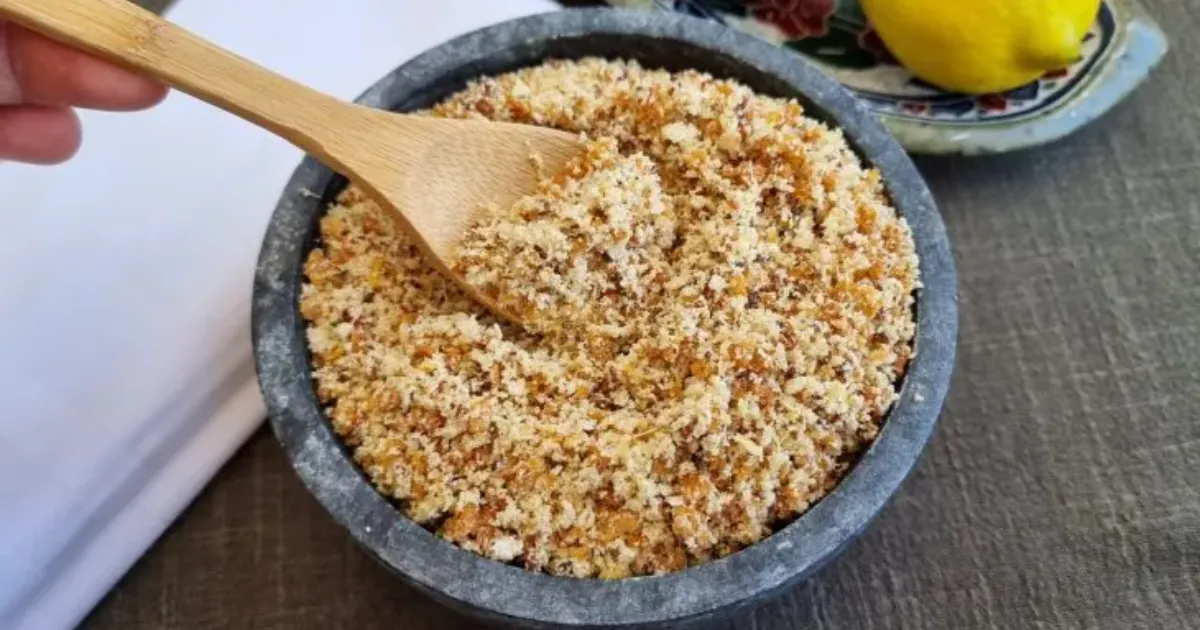 Receita de Farofa de Proteína de Soja: uma deliciosa farofa feita com proteína de soja cozida, cebola, alho, farinha de rosca, óleo, temperos e ervas que vai deixar o