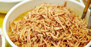 Fica muito gosto. É claro que para isso você terá que ter um frango desfiado e muito bem temperado para realçar o sabor do molho branco do seu fricassê de frango com batata palha.